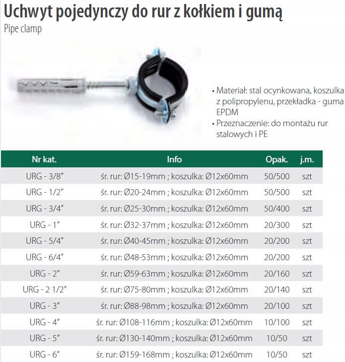 STALCO Uchwyt pojedynczy do rur z gumą URG-3/8” (25/300) URG038