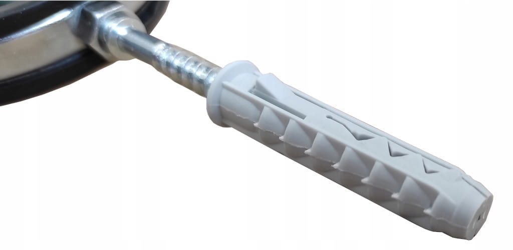 - łącznika tworzywowo-metalowego z trzpieniem dwugwintowym, którego jeden koniec wkręcany jest w tuleję tworzywową, a drugi w nakrętkę połączoną z obejmą stałą