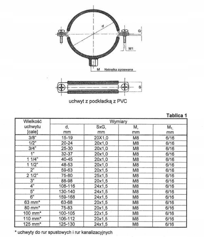 Stalowy uchwyt do mocowania i podparcia przewodów z rur.