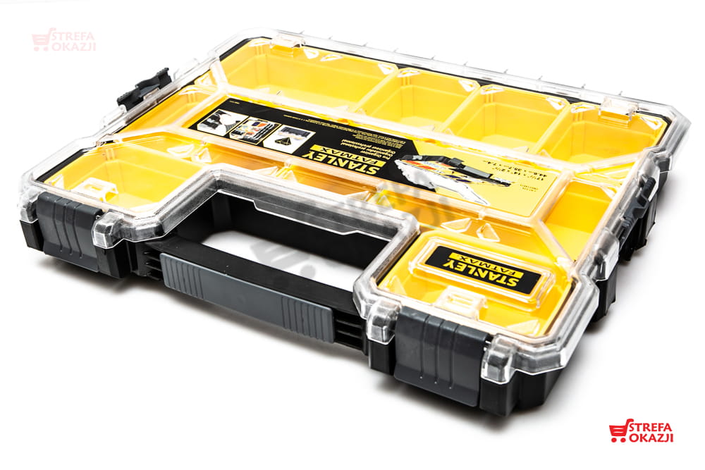 Organizer plastikowy FatMax firmy Stanley na drobne elementy. Bardzo solidnie wykonany, posiada mocną konstrukcję oraz praktyczną przemyślaną budowę.