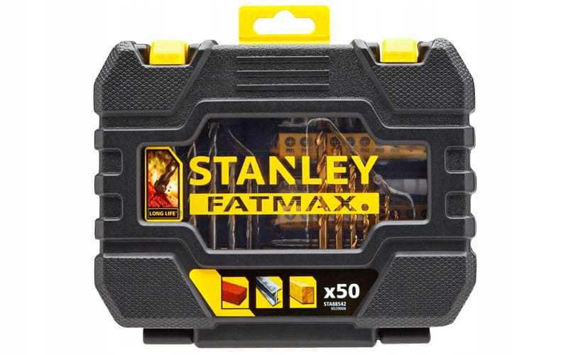 Zestaw profesjonalnych bitów i wierteł Stanley Fatmax 50 części LONG LIFE. Zawiera różne typy i rozmiary bitów oraz wierteł. Komplet w mocnej, zamykanej kasecie z miejscem dla każdego elementu.