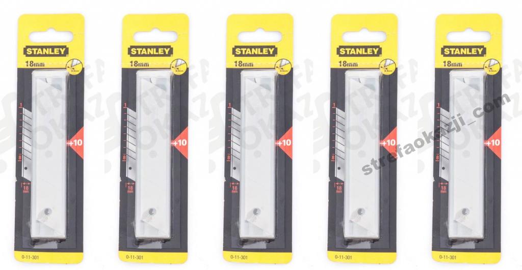 KOMPLET Wysokiej jakości 50 OSTRZY FIRMY STANLEY 18 MM. Pasują do większości noży budowlanych dostępnych na rynku.