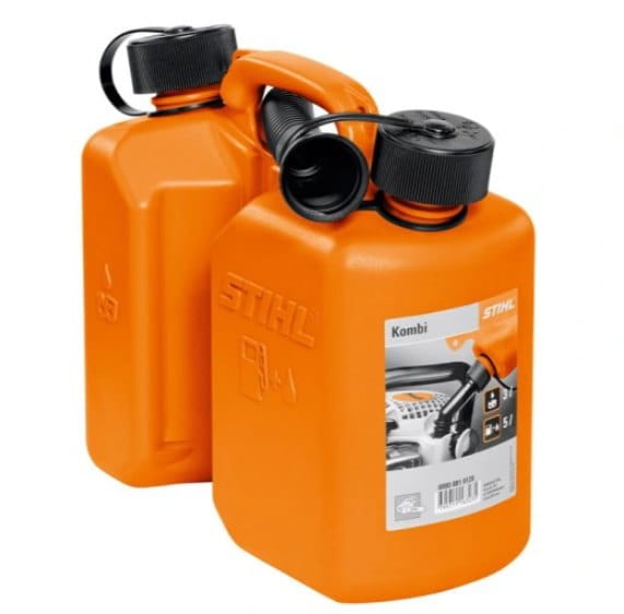 Podwójny pojemnik na 3 l paliwa i 1,5 l oleju do pił łańcuchowych. Posiada certyfikat UN, w komplecie wlew, pasuje do systemów napełniania STIHL 00008810124