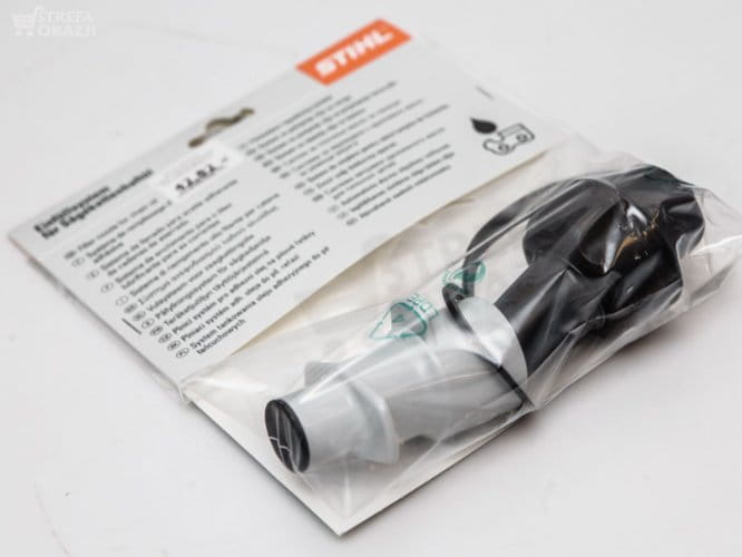 Lejek do tankowania oleju do pił łańcuchowych STIHL uniemożliwiający przepełnienie zbiornika lub rozlaniu. Specjalny zawór odcina dopływ cieczy w momencie wypełnienia zbiornika i chroni przed rozlaniem. Przeznaczony do kanistrów o pojemności do 3l.