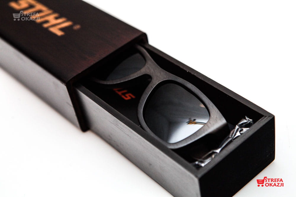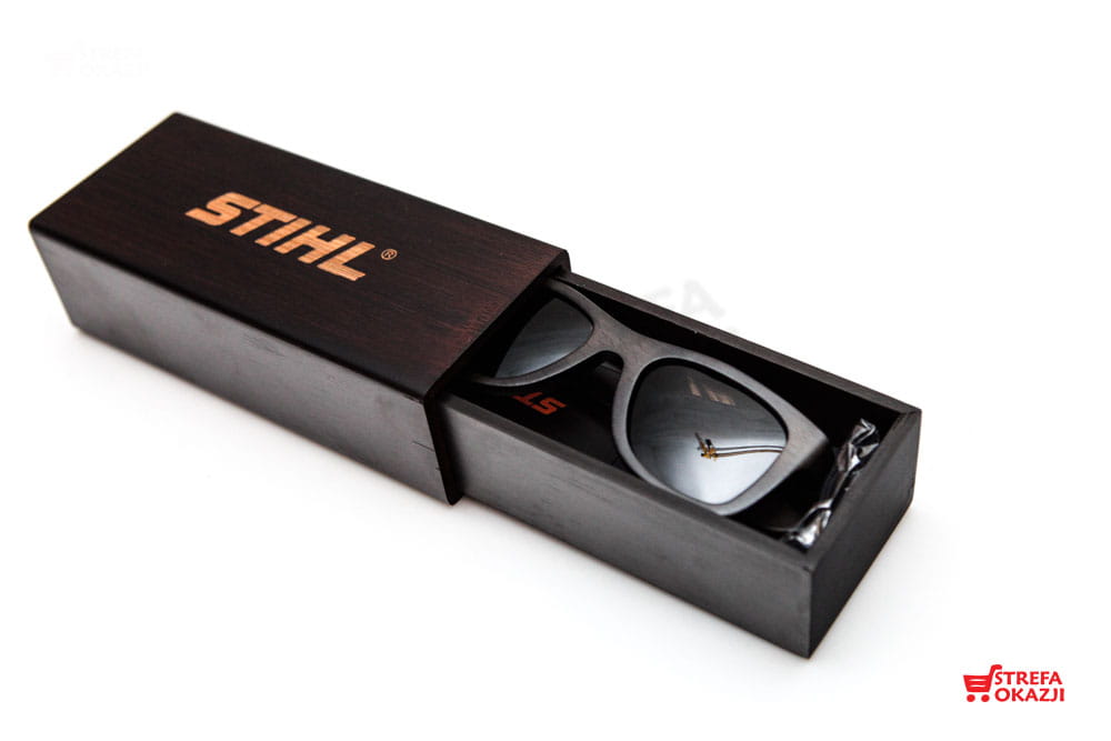 STIHL OKULARY Z DREWNIANĄ OPRAWĄ PUDEŁKO + FUTERAŁ