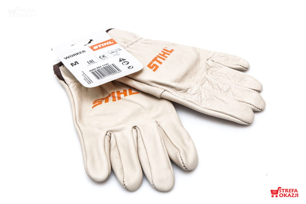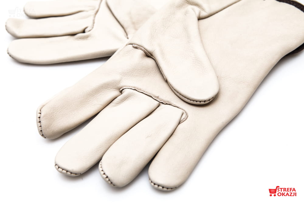 Uniwersalne rękawice robocze, wykonane ze skóry bydlęcej.