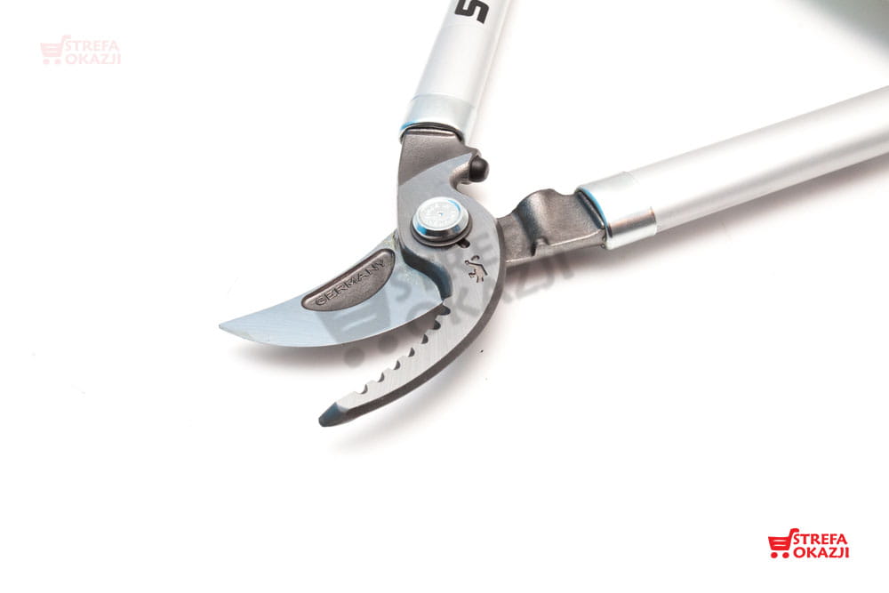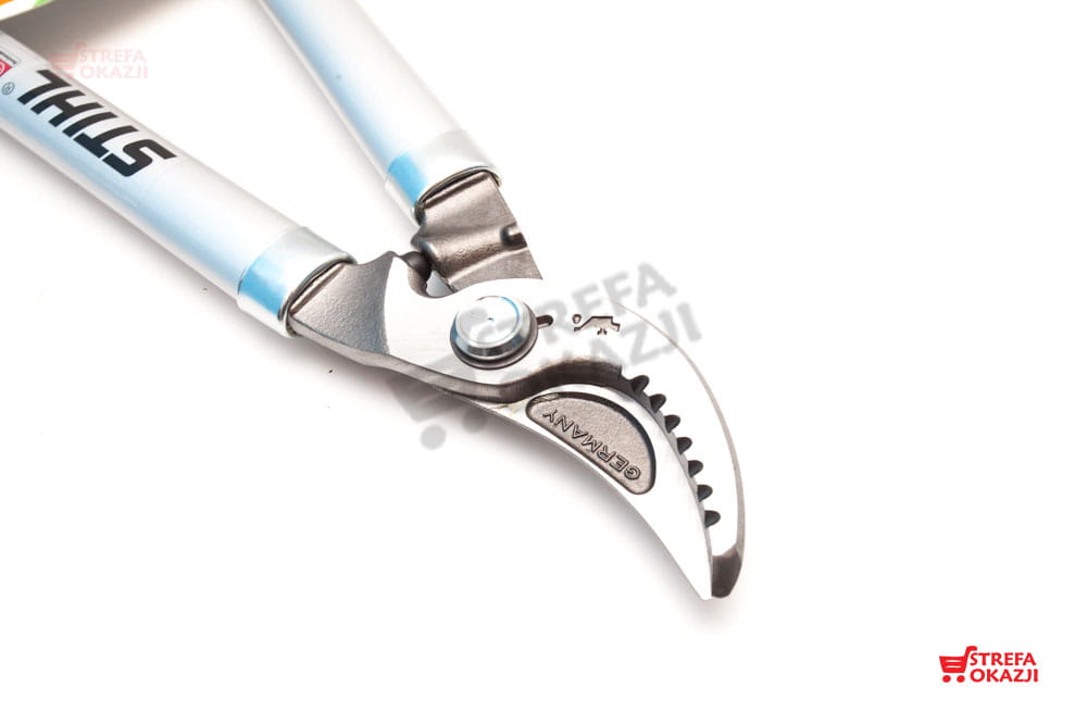 Bardzo wytrzymałe, kute ostrza z rowkiem do odprowadzania soków roślinnych, odpowiedni do cięcia żywych gałęzi. Ostrze z wewnętrznym smarowaniem, wyżłobienia na przeciwostrzu zapobiegające wysuwaniu się ciętego materiału, aluminiowe, ergonomiczne uchwyty, amortyzujące odbojniki chroniące przeguby. Długość 60 cm. Ciężar 1000 g, średnica do 3 cm.