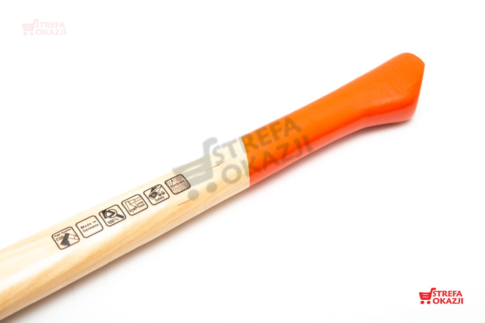 - tuleja wzmacniająca i przykręcana płyta zabezpieczająca, zapewniają wyjątkowo stabilne połączenie styliska i ostrza siekiery