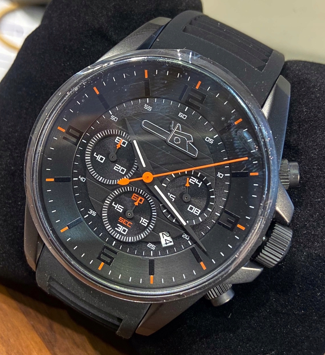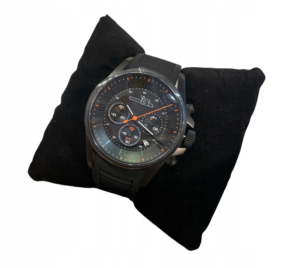 Zegarek sportowy Stihl wykonany przez renomowaną firmę Jacques Lemans. Zegarek posiada kopertę wykonaną ze stali nierdzewnej z czarną powłoką IP o średnicy 44 mm, która będzie się świetnie prezentować na każdej męskiej ręce. Czarna tarcza z detalami w kolorze pomarańczowym zachwyca połączeniem cyfr arabskich oraz datownikiem między godziną czwartą a piątą. Model z mechanizmem kwarcowym, hartowanym szkłem Crystex i okrągłym, zakręcanym dekielkiem jest wodoszczelny do 10 atm. Wysokiej jakości czarny silikonowy pasek ze sprzączką podkreśla świetny design.