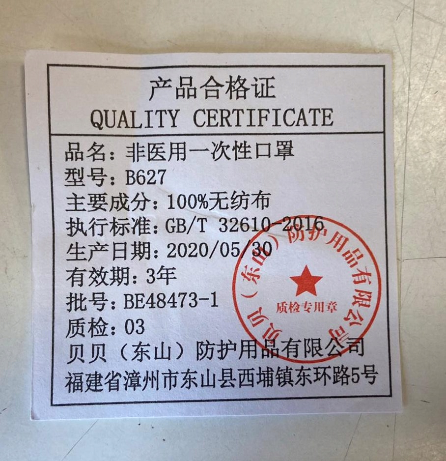 Maseczka posiada deklarację producenta o zgodności z normą EU2016/425.