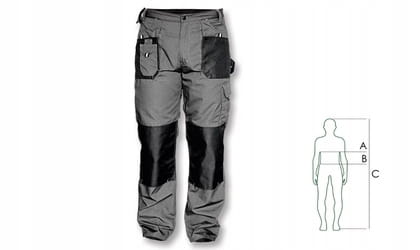 Spodnie robocze męskie z linii Basic Line w kolorze szarym, rozmiar XXL. Wykonane w 35% z Bawełny, wysoka gramatura materiału 267 g/m. Spodnie posiadają liczne kieszenie wielofunkcyjne.
