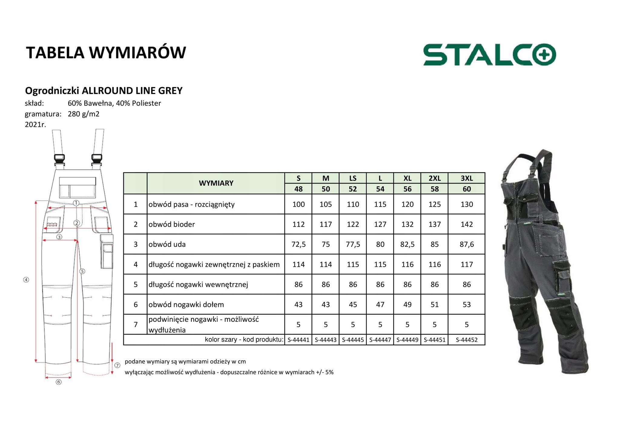 Spodnie robocze długie Stalco Allround r. LS 52