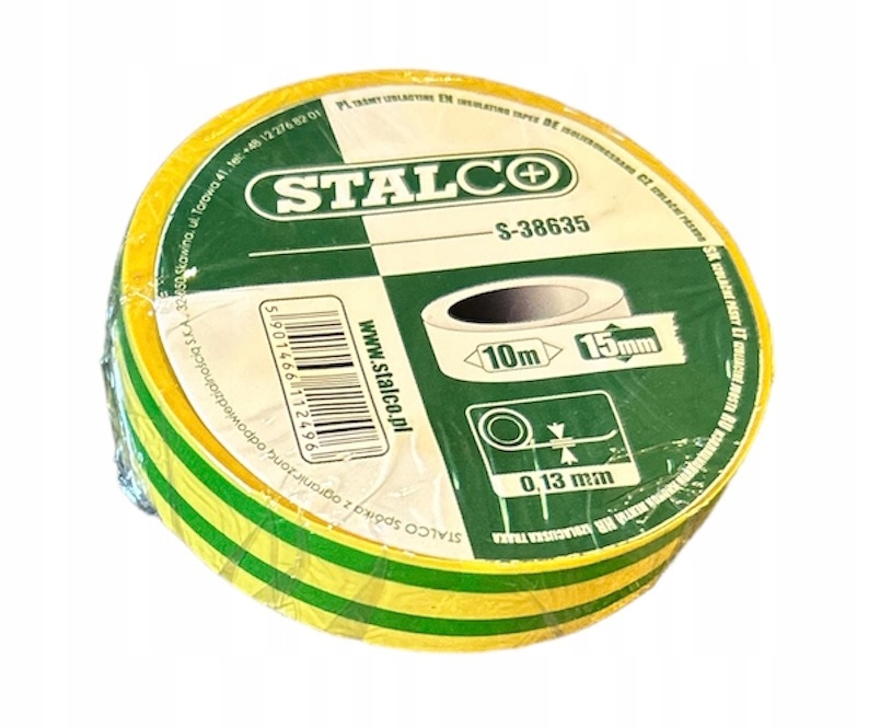TAŚMA IZOLACYJNA 15 MM X 10 M ŻÓŁTO-ZIELONA STALCO