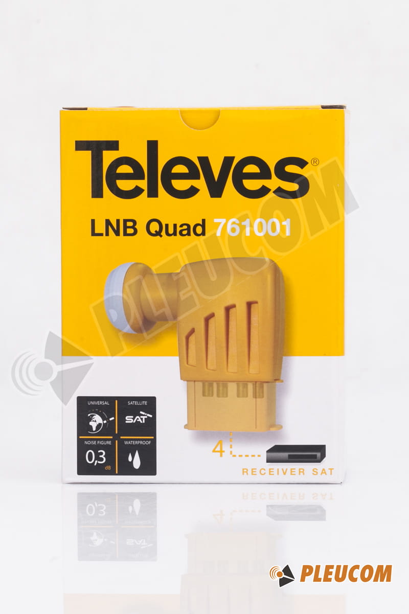 Konwerter antenowy typu Quad służący do odbioru jednej satelity przez cztery odbiorniki satelitarne. Znajduje zastosowanie, gdy chcemy podłączyć cztery dekodery do jednej anteny lub do podłączenia dwóch dekoderów PVR w celu jednoczesnego nagrywania i oglądania różnych kanałów. Idealnie pasujący do anten wszystkich producentów. Bardzo dobra jakość wykonania.