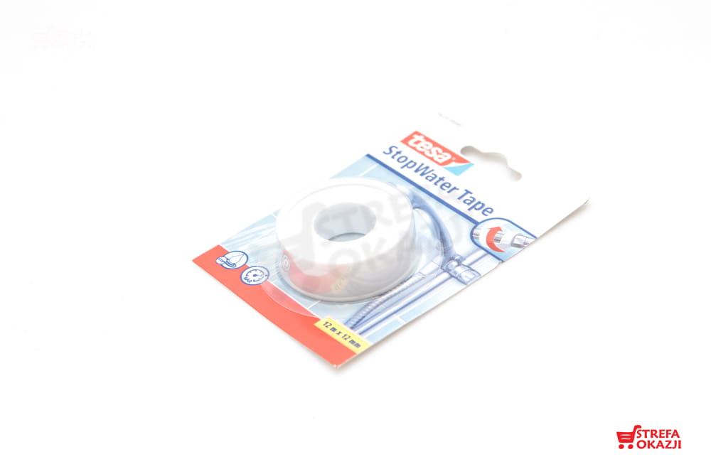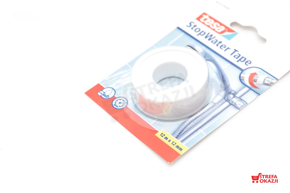 Taśma naprawcza Tesa STOP WATER, teflonowa. Do uszczelniania połączeń gwintowanych w hydraulice i instalacjach powietrznych.