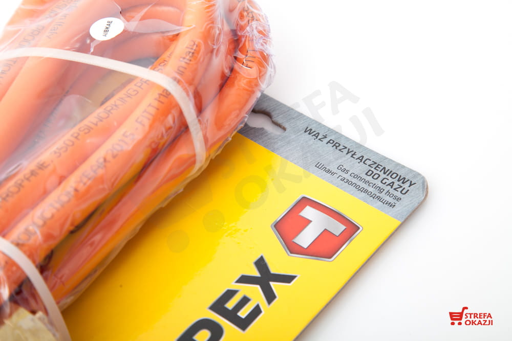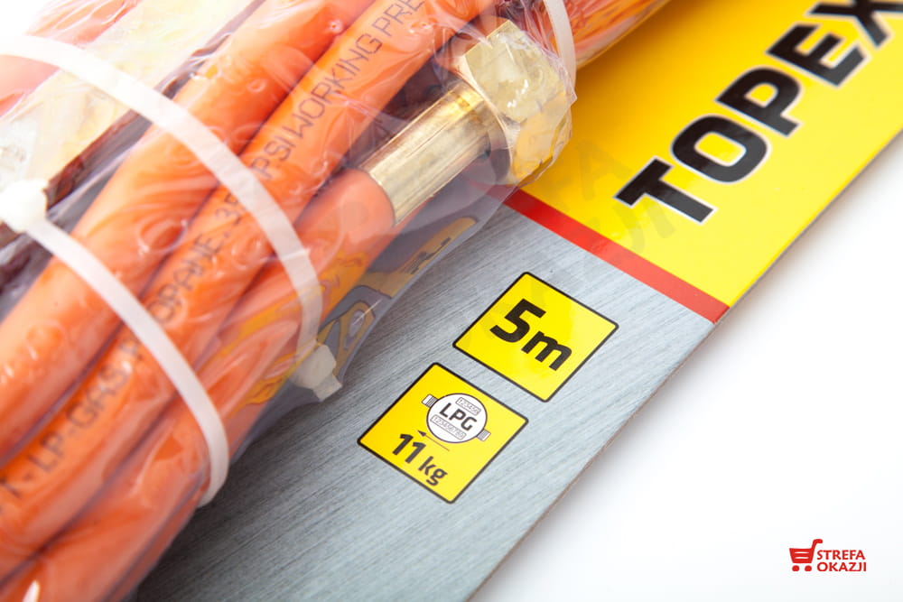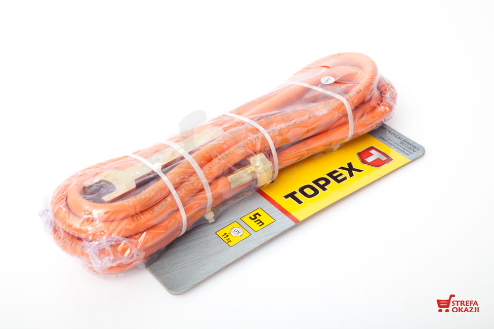 Wąż przyłączeniowy do gazu TOPEX wykonany z wysokiej jakości materiału gwarantującego bezpieczeństwo użytkowania.
