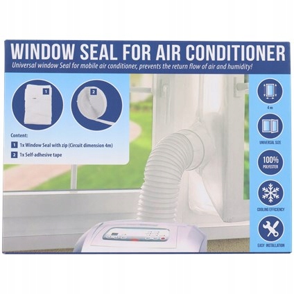 Uniwersalne uszczelnienie okna do mobilnego klimatyzatora zapobiega dostawaniu się do środka powietrza i wilgoci.