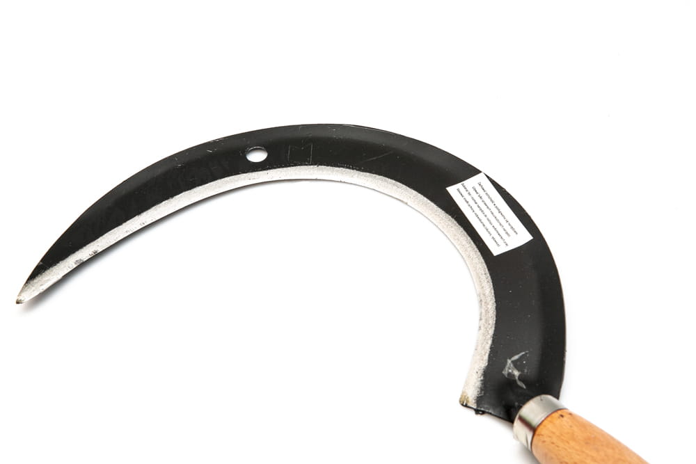 Tradycyjnie wykonany stalowy sierp do ścinania roślin.