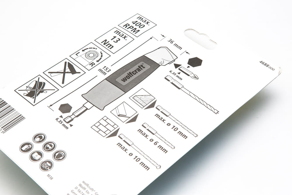 Niewielki adapter do wkręcania pod kątem 90° w miejscach trudnodostępnych. Proste, poręczne rozwiązanie do natychmiastowego zastosowania.Pasuje do koncówek i wierteł z trzpieniem sześciokątnym, do drewna o max. Ø 10 mm, do metalu o max. Ø 10 mm, do kamienia o max. Ø 10 mm- urządzenie: wkrętarki akumulatorowe- wymiary kąta wynoszą zaledwie 52 mm włączając 25 mm końcówkę- przekładnia z łożyskiem kulkowym- obroty prawe/lewe- max. 400 RPM- max. 13 Nm- opakowanie: podwójna karta z włożonym blistremtrzpień 6 mm (1/4”)dłogość: 153 mmWOLFCRAFT narzędzia dla ambitnych majsterkowiczówFirma Wolfcraft powstała w roku 1949 i od tego czasu jest uznanym producentem innowacyjnych narzędzi ręcznych oraz uniwersalnego osprzętu do elektronarzędzi z przeznaczaniem do wykorzystania zarówno w gospodarstwach domowych jak również i przez wymagających użytkowników. Jesteśmy firmą zorientowaną na nieustanny rozwój ukierunkowany na realizację potrzeb i zainteresowań naszych Partnerów i Klientów. Naszą filozofię produkcji i sprzedaży urzeczywistniamy już od ponad 60 lat wprowadzając z powodzeniem na rynek wciąż nowe i innowacyjne rozwiązania.