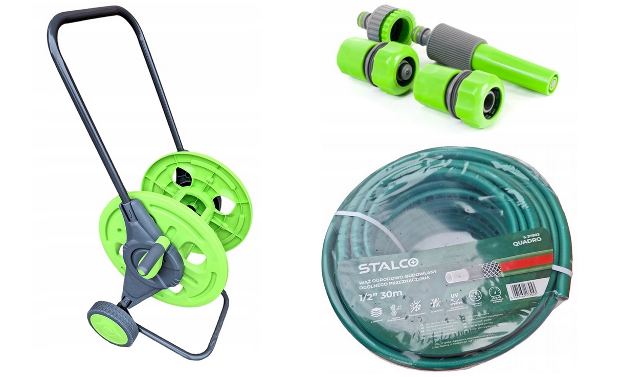 ZESTAW WÓZEK WĄŻ OGRODOWY + ZŁĄCZA ZRASZACZ 30M STALCO