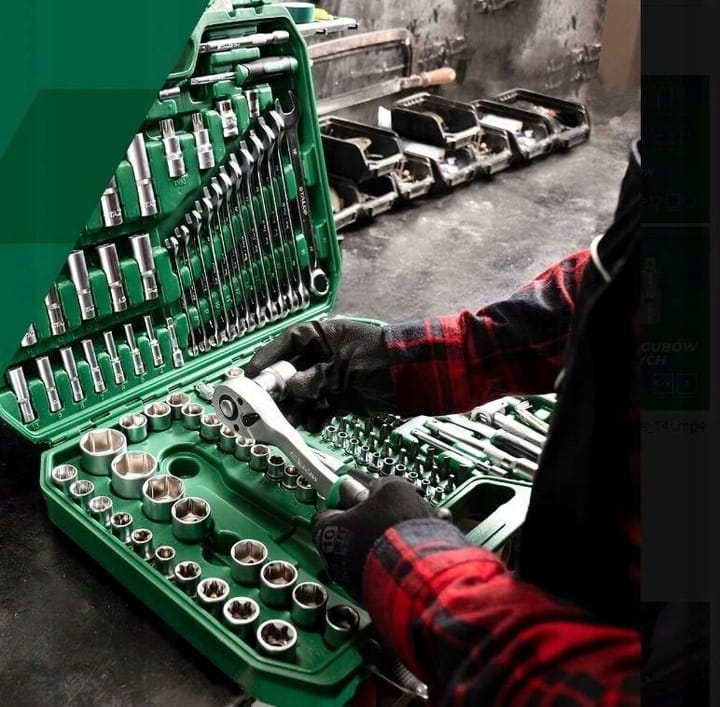 - Nasadki, bity, klucze i akcesoria wykonane z wysokogatunkowej stali stopowej chromowo-wanadowej odporne na odkształcenia