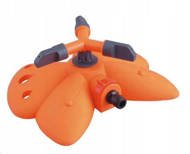Zraszacz obrotowy 3-ramienny regulowany na podstawie w kształcie motyla. Zraszacz ogrodowy wykonany jest z wysokiej jakości trwałego tworzywa.